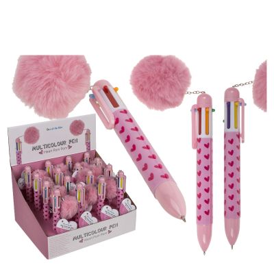 Στυλό 6 Χρωμάτων Μελανιού Με Πομ Πομ Ροζ Πλαστικό 14.2cm
