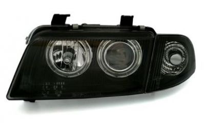 16. Φανάρια εμπρός angel eyes για Vw Passat 3Β/B5 (1997-2000) - μαύρα , χωρίς λάμπες (Η7) - σετ 2τμχ.