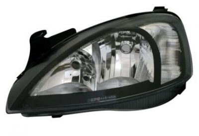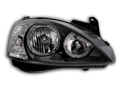 5. Φανάρια εμπρός για Opel Corsa (2001-2006) - μαύρα , με λάμπες (Η1) - σετ 2τμχ.