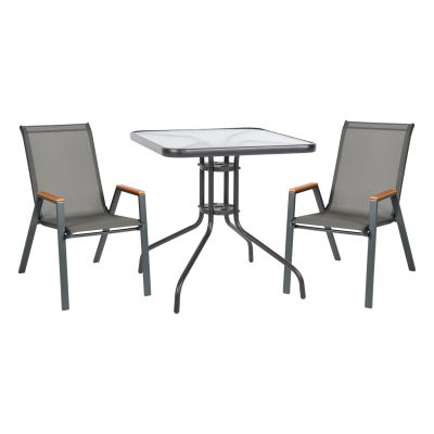ΣΕΤ ΤΡΑΠΕΖΑΡΙΑΣ 3ΤΜΧ FIGO HM10730.01-- 2 ΚΑΡΕΚΛΕΣ & ΤΕΤΡΑΓΩΝΟ ΤΡΑΠΕΖΙ 70x70εκ ΓΚΡΙ