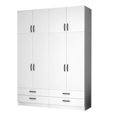 15. Ντουλάπα ρούχων Victoria Megapap τετράφυλλη με συρτάρια χρώμα λευκό 200x60x181εκ.