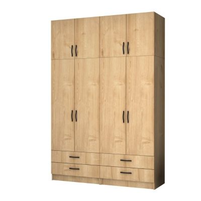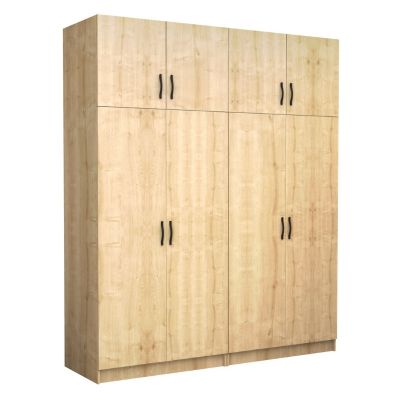 7. Ντουλάπα ρούχων Ricardo Megapap τετράφυλλη με πατάρι χρώμα φυσικό οξιάς 160x51,8x240εκ.