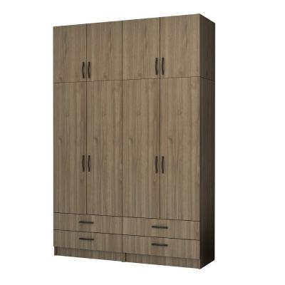 5. Ντουλάπα ρούχων Ricardo Megapap τετράφυλλη με πατάρι χρώμα καρυδί 160x51,8x240εκ.