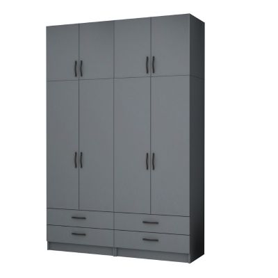 4. Ντουλάπα ρούχων Ricardo Megapap τετράφυλλη με πατάρι και συρτάρια χρώμα ανθρακί 160x51,8x240εκ.