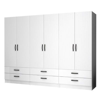 21. Ντουλάπα ρούχων Victoria Megapap εξάφυλλη με συρτάρια χρώμα λευκό 300x60x181εκ.