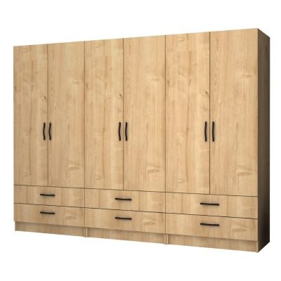 10. Ντουλάπα ρούχων Ricardo Megapap εξάφυλλη χρώμα φυσικό οξιάς 240x51,8x181εκ.
