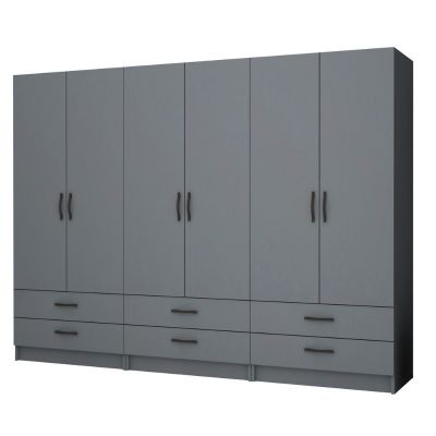 8. Ντουλάπα ρούχων Ricardo Megapap εξάφυλλη με συρτάρια χρώμα ανθρακί 240x51,8x181εκ.