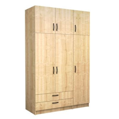 13. Ντουλάπα ρούχων Victoria Megapap τρίφυλλη με πατάρι και συρτάρια χρώμα φυσικό οξιάς 150x60x240εκ.