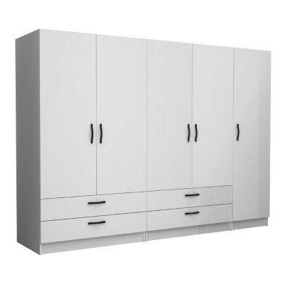 24. Ντουλάπα ρούχων Victoria Megapap πεντάφυλλη με συρτάρια χρώμα λευκό 250x60x181εκ.