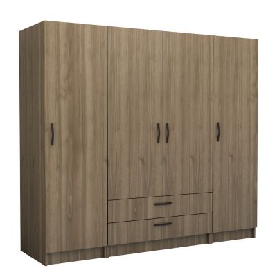 17. Ντουλάπα ρούχων Victoria Megapap τετράφυλλη με συρτάρια χρώμα καρυδί 200x60x181εκ.