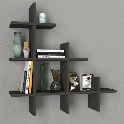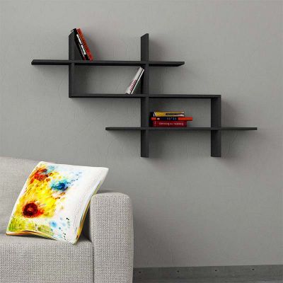 11. Ραφιέρα τοίχου Halic Megapap μελαμίνης χρώμα ανθρακί 150x22x82εκ.