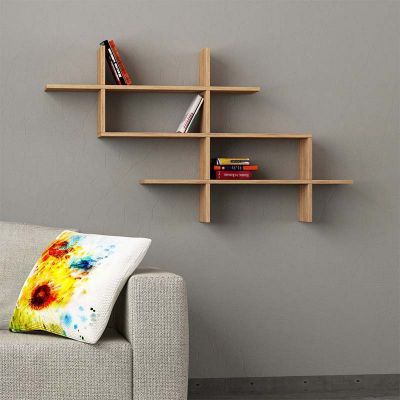 10. Ραφιέρα τοίχου Destan Megapap χρώμα ανθρακί - φυσικό οξιάς 65x19x96εκ.