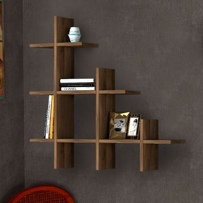 5. Ραφιέρα τοίχου Juke Megapap από μελαμίνη χρώμα καρυδί 81,8x18x80εκ.