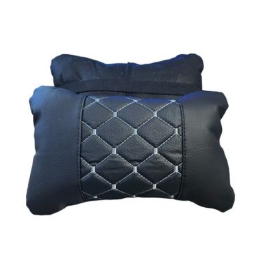 Σετ Μαξιλάρι Προσκέφαλου Αυτοκινήτου 2 Τεμάχια Μαύρο με Γκρι Ραφές ECO Δέρμα FZPOD034
