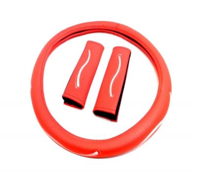 Σετ Καλύμματα για Τιμόνι και Ζώνες από Οικολογικό Δέρμα με Διάμετρος 37 - 39cm Κόκκινο FZVOL28