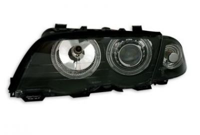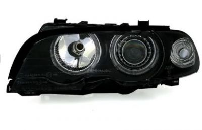 Φανάρια εμπρός angel eyes για BMW E46 sedan (1998-2001) - μαύρα , χωρίς λάμπες (Η7) - σετ 2τμχ.