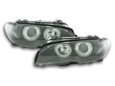 Φανάρια εμπρός angel eyes για BMW E46 coupe και cabrio (2003-2006) - μαύρα , χωρίς λάμπες (Η7) - σετ 2τμχ.