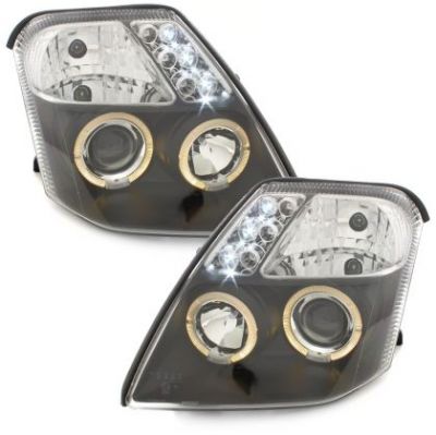 Φανάρια εμπρός angel eyes για Ford Focus (2001-2004) - μαύρα , με λάμπες (Η1) - σετ 2τμχ.