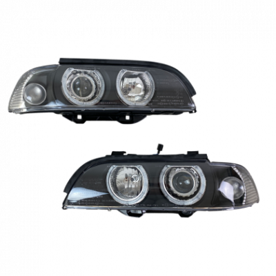Φανάρια εμπρός angel eyes για BMW E39 (1995-2003) - μαύρα , με λάμπες (Η7) - σετ 2τμχ.