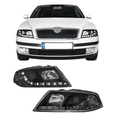 Φανάρια εμπρός led για Seat Altea /Leon / Toledo (2005-2009) - μαύρα , με λάμπες (Η1) - σετ 2τμχ.