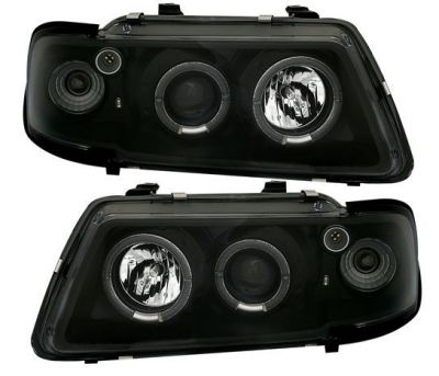 7. Φανάρια εμπρός angel eyes για Vw Passat 3Β/B5 (1997-2000) - μαύρα , χωρίς λάμπες (Η7) - σετ 2τμχ.
