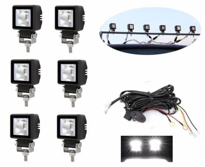 18. Σετ 6 Τεμάχια LED Προβολέα με καλωδίωση Λευκό Flood + Λευκό DRL Light 12V - 24V 59mm x 59mm IP68 FZHAL488