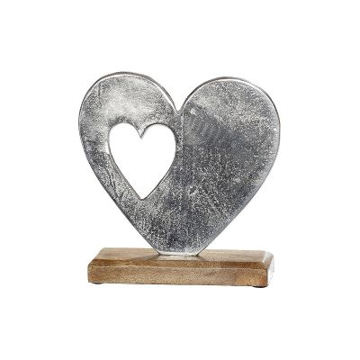 Διακοσμητικό ArteLibre Καρδιά Σε Βάση Ασημί/Φυσικό Αλουμίνιο/Ξύλο 5x16x15cm