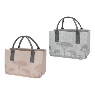 Τσάντα Ορθογώνια Μοτίφ Ελέφαντα Felt Μπεζ Ανοιχτό Γκρι 2 Ποικιλία 40X25X26Cm 40X25X26Cm