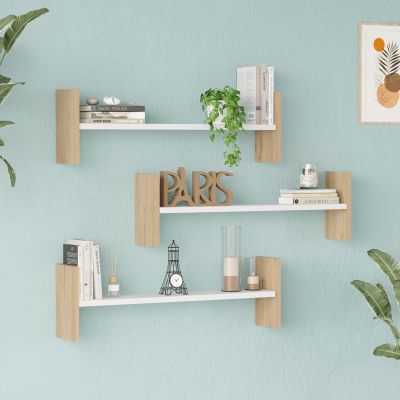 Ραφιέρα τοίχου Mento pakoworld λευκό με oak 75,6x14,5x23,6εκ