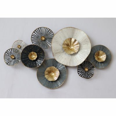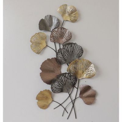 5. Διακοσμητικό τοίχου Flower Megapap μεταλλικό χρώμα χρυσό - πράσινο 74x38εκ.