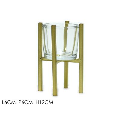 Κηροπήγιο Χρυσό Μέταλλο/Γυαλί 6x12cm