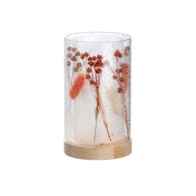 Θήκη Ρεσώ Με Αποξηραμένα Λουλούδια Φωτιζόμενη 10 LED Κρεμ Γυαλί 16cm