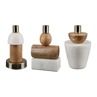 Κηροπήγιο Λευκό/Φυσικό Μέταλλο/Ξύλο/Μάρμαρο 9x10x16.5cm Σε 3 Σχέδια