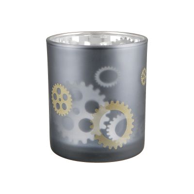 Κηροπήγιο ArteLibre Με Διακόσμηση Γρανάζια Γκρι Γυαλί Φ7x8cm
