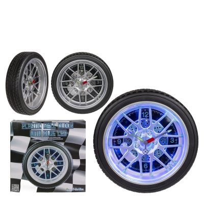 Ρολόι Τοίχου Ρόδα Αυτοκινήτου Με 16 LED Πλαστικό Φ35cm