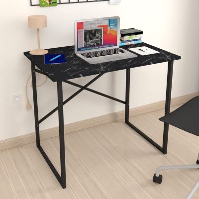 23. Γραφείο εργασίας Rilke Megapap μεταλλικό - μελαμίνης χρώμα μαύρο εφέ μαρμάρου 90x60x75εκ.