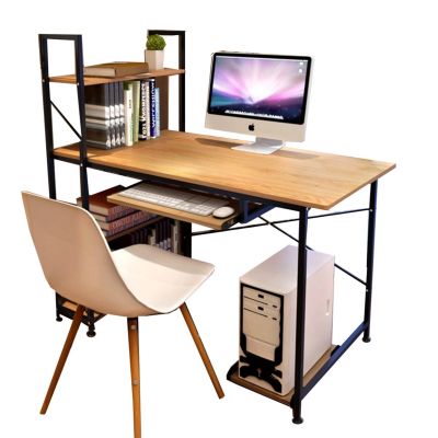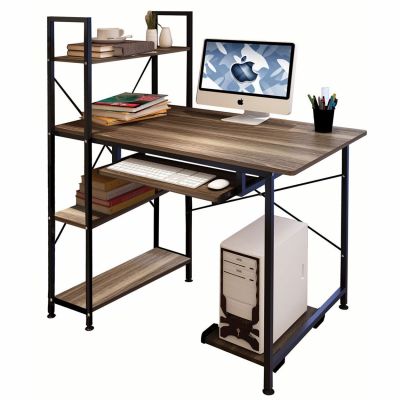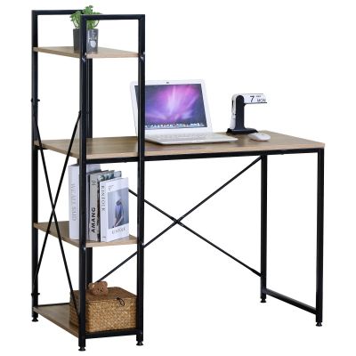 Γραφείο ArteLibre JORVIK Με Ράφια Δρυς/Μαύρο Μοριοσανίδα/Μέταλλο 100x52x120cm