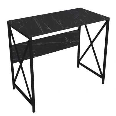 Γραφείο ArteLibre CASILDA Μαύρο/Όψη Μαρμάρου Μέταλλο/Μοριοσανίδα 75x90x45cm