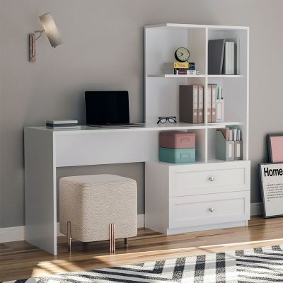 17. Γραφείο εργασίας Emily Megapap με βιβλιοθήκη χρώμα λευκό 155x60x152εκ.
