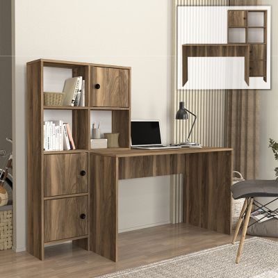 Γραφείο εργασίας Lesya Megapap αναστρέψιμο χρώμα καρυδί 159,2x59,6x141,2εκ.