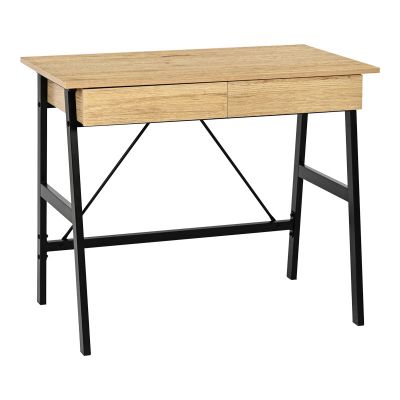 2. Γραφείο εργασίας Lione pakoworld με συρτάρια σε oak απόχρωση με πόδι μαύρο μέταλλο 90x50x75εκ