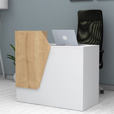Γραφείο υποδοχής - reception Merlin Megapap χρώμα λευκό - φυσικό οξιάς 110x50x101,8εκ.
