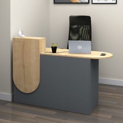 20. Γραφείο υποδοχής - reception Gemini Megapap χρώμα φυσικό οξιάς - ανθρακί 90x50x110εκ.
