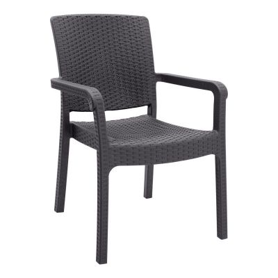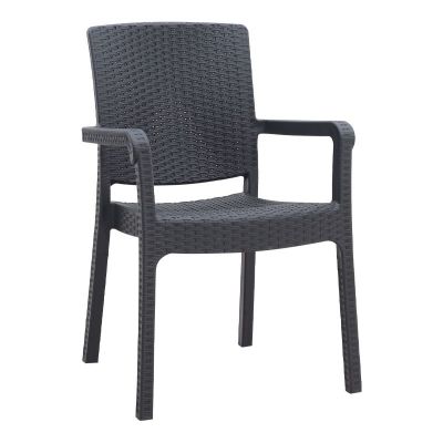 17. Πολυθρόνα Lindaria pakoworld στοιβαζόμενη μέταλλο-pe rattan σε ανθρακί απόχρωση 54x63x74εκ
