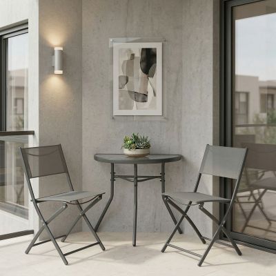 24. Τραπεζαρία Watson-Confidence A σετ 3τεμ pakoworld μέταλλο σε ανθρακί απόχρωση Φ60x70εκ