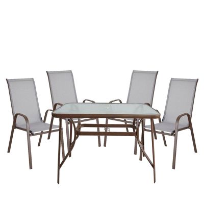 Σετ Τραπεζαρία Κήπου ArteLibre SUN Μέταλλο Γκρι/Καφέ Με 4 Πολυθρόνες
