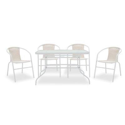 22. Τραπεζαρία Obbi-Ensure pakoworld 5τεμ μέταλλο-γυαλί σε λευκή απόχρωση 120x70x70εκ