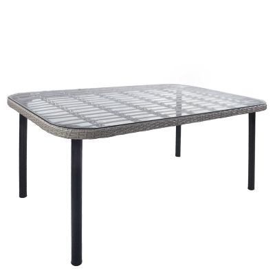 Τραπέζι Κήπου ArteLibre AMPIUS Γκρι/Μαύρο Μέταλλο/Rattan/Γυαλί 160x90x73cm