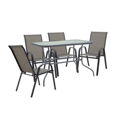 9. Τραπεζαρία Valor-Calan σετ 5τεμ pakoworld μέταλλο-textilene ανθρακί 110x60x70εκ
