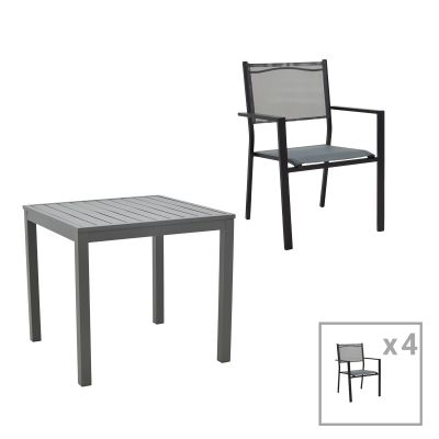 12. Τραπεζαρία Moly - Kliton σετ 5τεμ pakoworld ανθρακί και μαύρο αλουμίνιο-textilene σε ανθρακί απόχρωση 80x80x74εκ